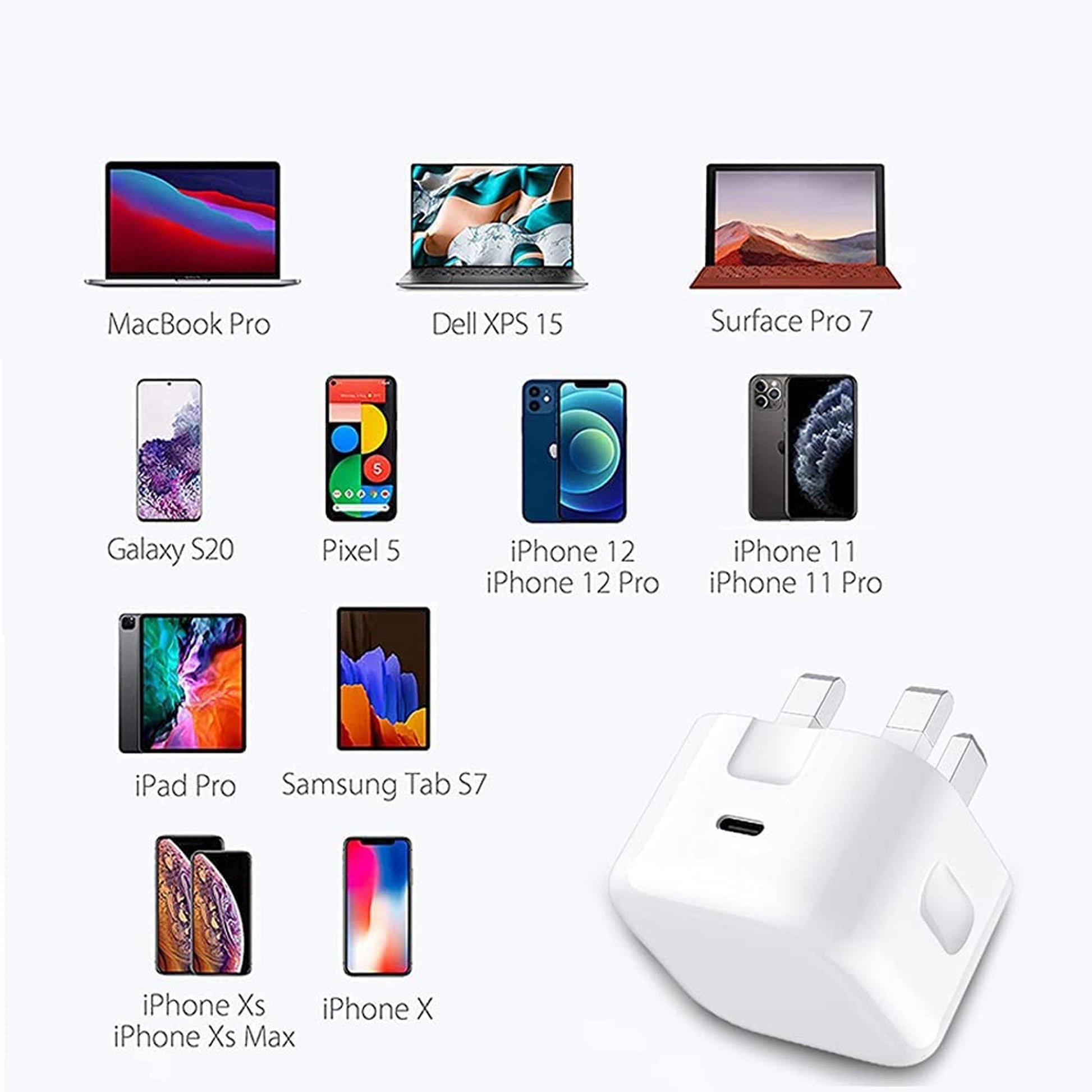 - 20W Phone USB C Plug: 20W USB C Plug provides a much more faster charging speed for your iPhone and ipad, Such Phone can be charged from 0% to 50% in only 30 minutes, 2.5 times faster than traditional 5V/3A adapter.